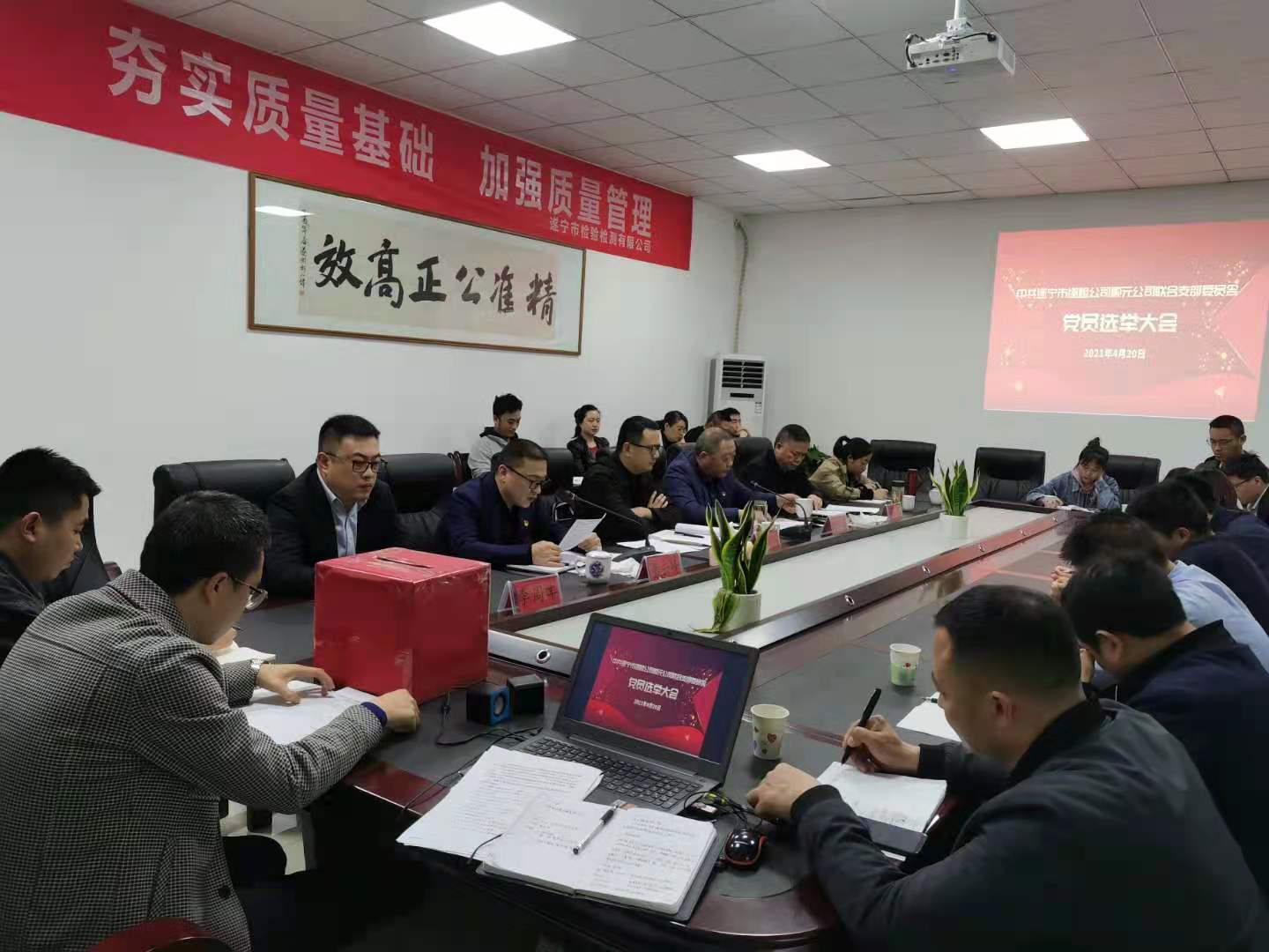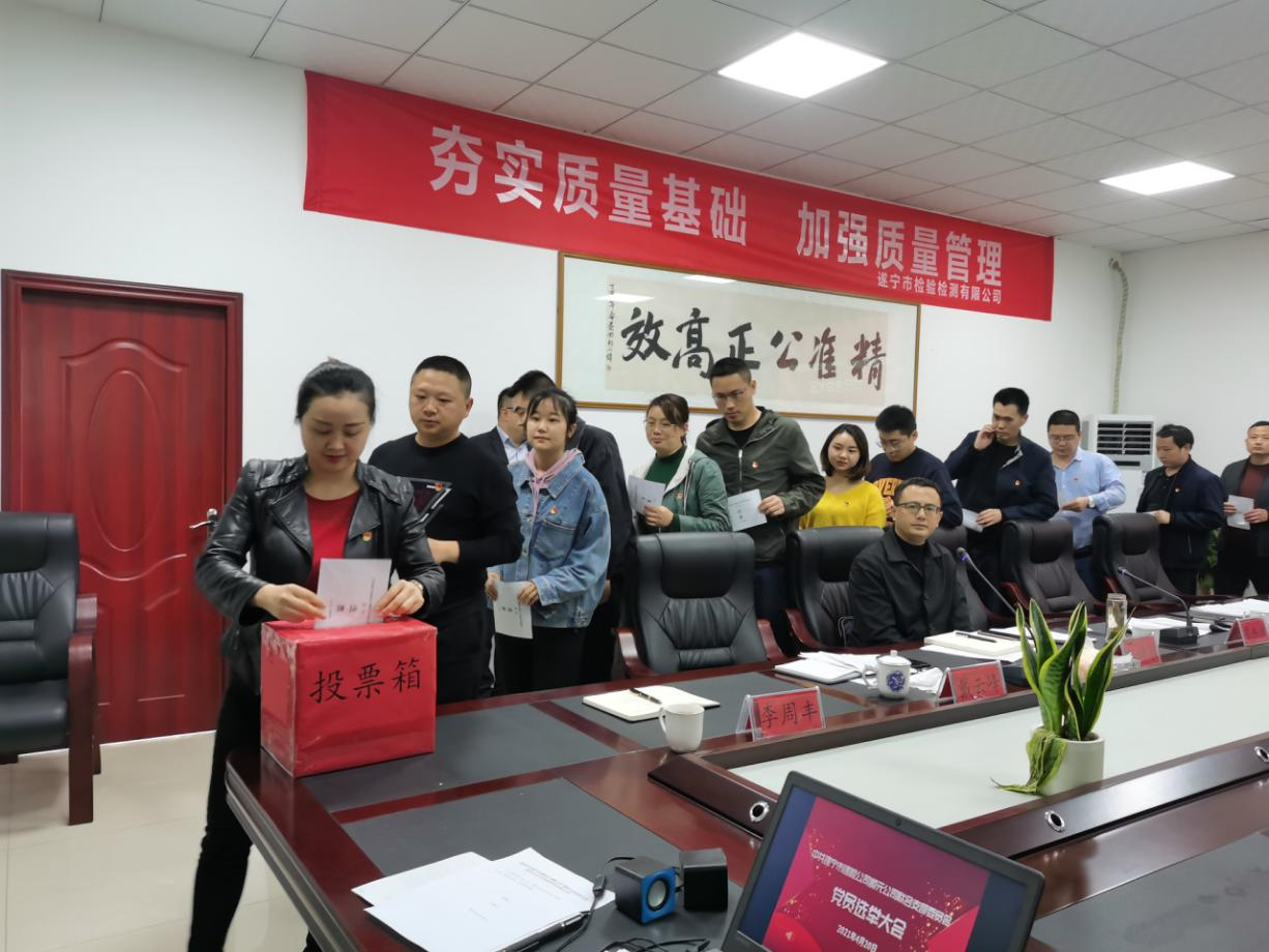 ? ? 大會(huì)在莊嚴(yán)的國歌聲中拉開了序幕。會(huì)上,賈杰洪同志匯報(bào)了成立遂檢公司順元公司聯(lián)合支部支委籌備工作情況,馮凱同志宣讀了興業(yè)集團(tuán)黨委的批復(fù)文件,戴云峰同志組織學(xué)習(xí)了《關(guān)于嚴(yán)肅換屆紀(jì)律加強(qiáng)換屆風(fēng)氣監(jiān)督的通知》。隨后,以舉手表決的方式,大會(huì)通過了《選舉辦法》、推選了監(jiān)票、計(jì)票工作人員。經(jīng)黨員無記名、差額投票,賈杰洪、馮凱、戴云峰、薛娟四名同志當(dāng)選為遂檢公司順元公司聯(lián)合支部第一屆委員會(huì)委員。在隨即召開的第一屆支部委員會(huì)第一次支委會(huì)上,賈杰洪同志被選舉為支部書記,馮凱同志被選舉為支部副書記。