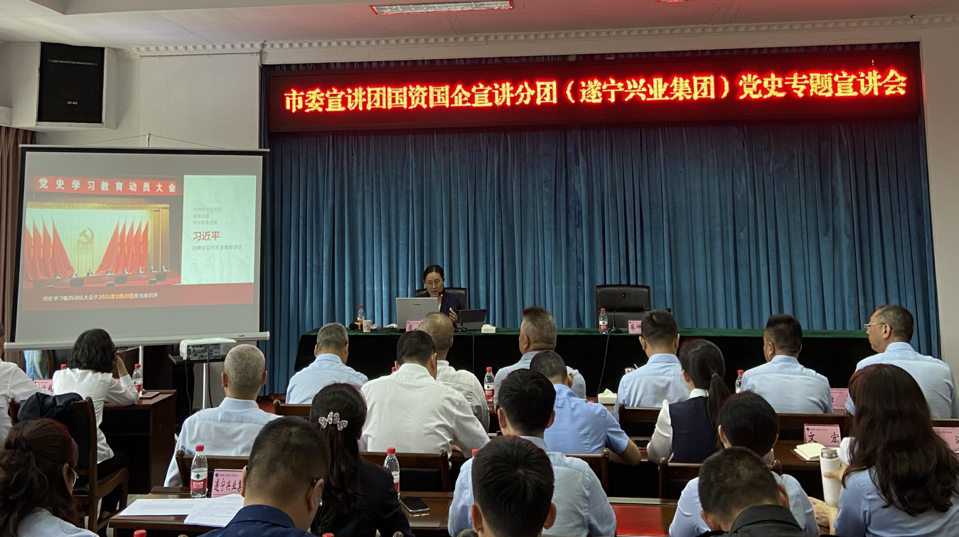 ? ? 511日,市委宣講團(tuán)第十分團(tuán)成員、市委黨校教研室主任屈燕走進(jìn)遂寧興業(yè)集團(tuán),開展黨史學(xué)習(xí)教育專題宣講。集團(tuán)公司及各直屬企業(yè)領(lǐng)導(dǎo)班子成員、中層干部,以及黨員和基層員工代表聆聽了宣講。集團(tuán)公司黨委委員、紀(jì)委書記蔡坤辰主持宣講會并對下一階段黨史學(xué)習(xí)教育提出要求。