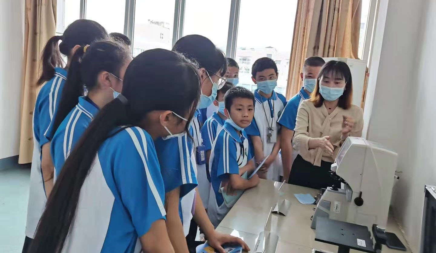 ? ? “健康計量走進學校”活動現(xiàn)場,公司工作人員用專業(yè)的計量儀器設備為學生們檢測眼鏡質(zhì)量,講解愛眼護眼相關知識。