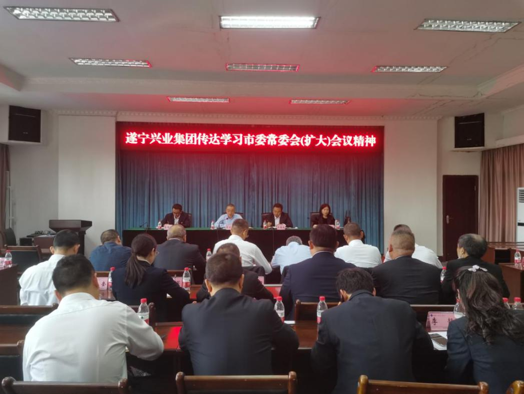 ? ? 4月22日,遂寧興業(yè)集團(tuán)召開(kāi)專題會(huì)議,傳達(dá)學(xué)習(xí)市委常委會(huì)(擴(kuò)大)會(huì)議精神。會(huì)議由集團(tuán)公司黨委書(shū)記、董事長(zhǎng)彭普誠(chéng)主持,集團(tuán)本部中層及以上干部,各直屬企業(yè)高管參加會(huì)議。